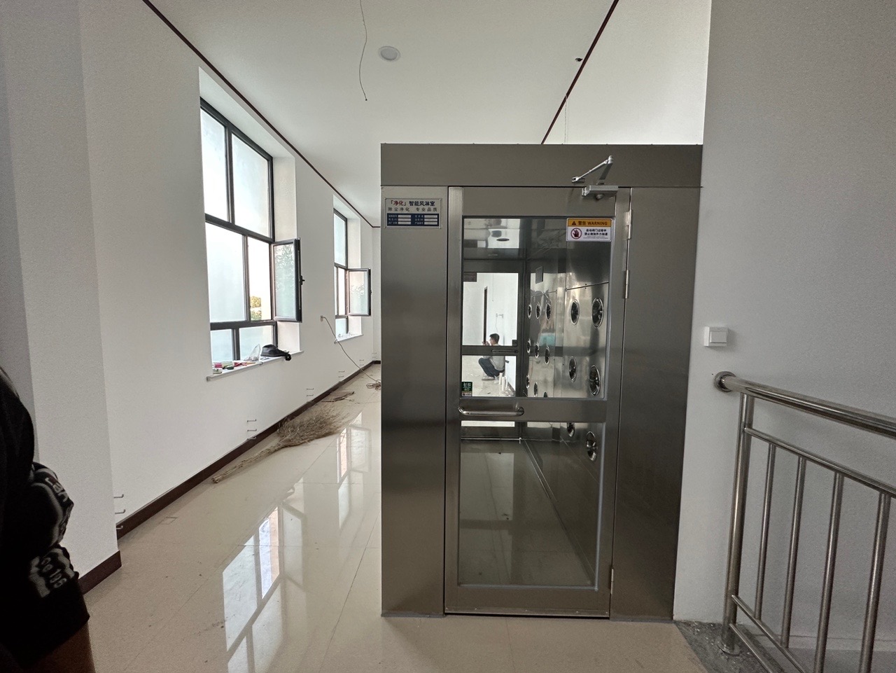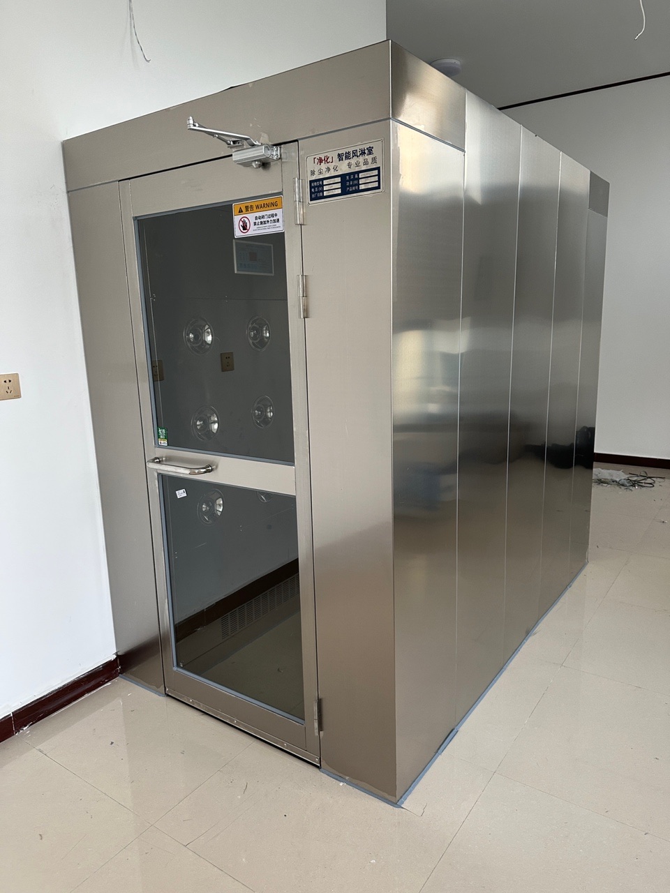 不銹鋼風淋室主要由箱體、不銹鋼門、粗效過濾器、高效過濾器、風機、靜壓箱、噴嘴聯鎖控制器、操作面板、感應裝置等部件組成。