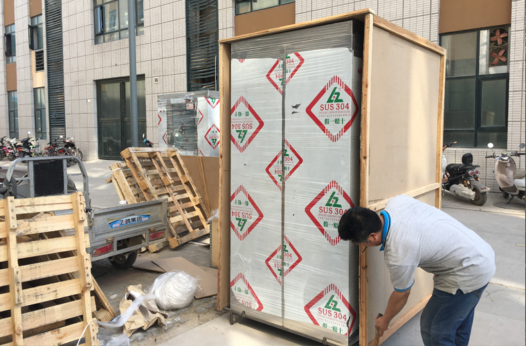 工人正在進行風淋室裝箱